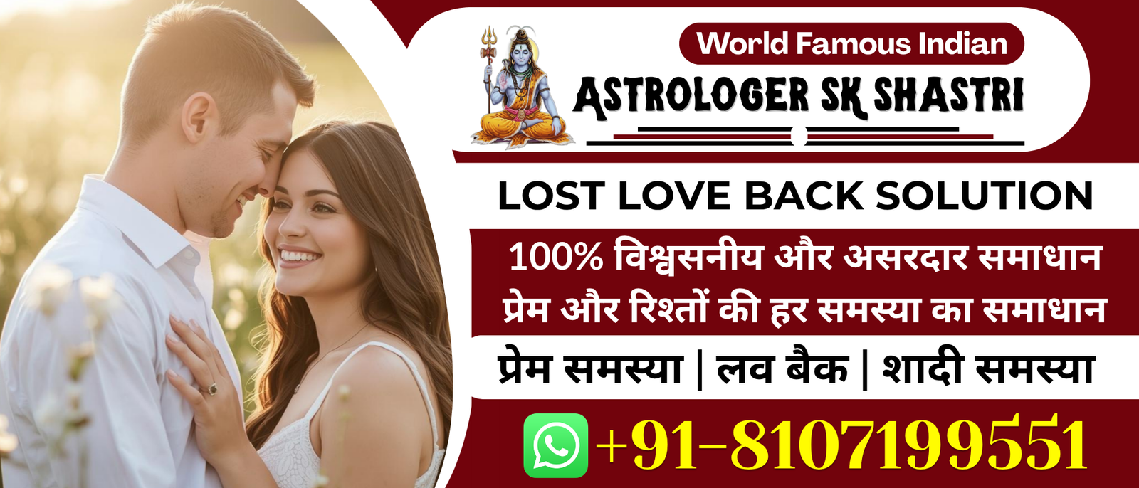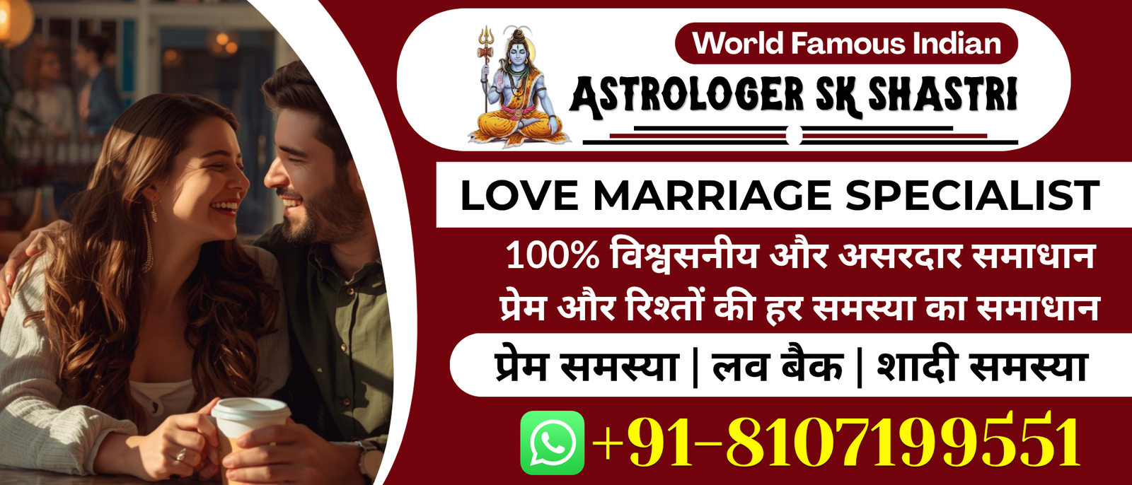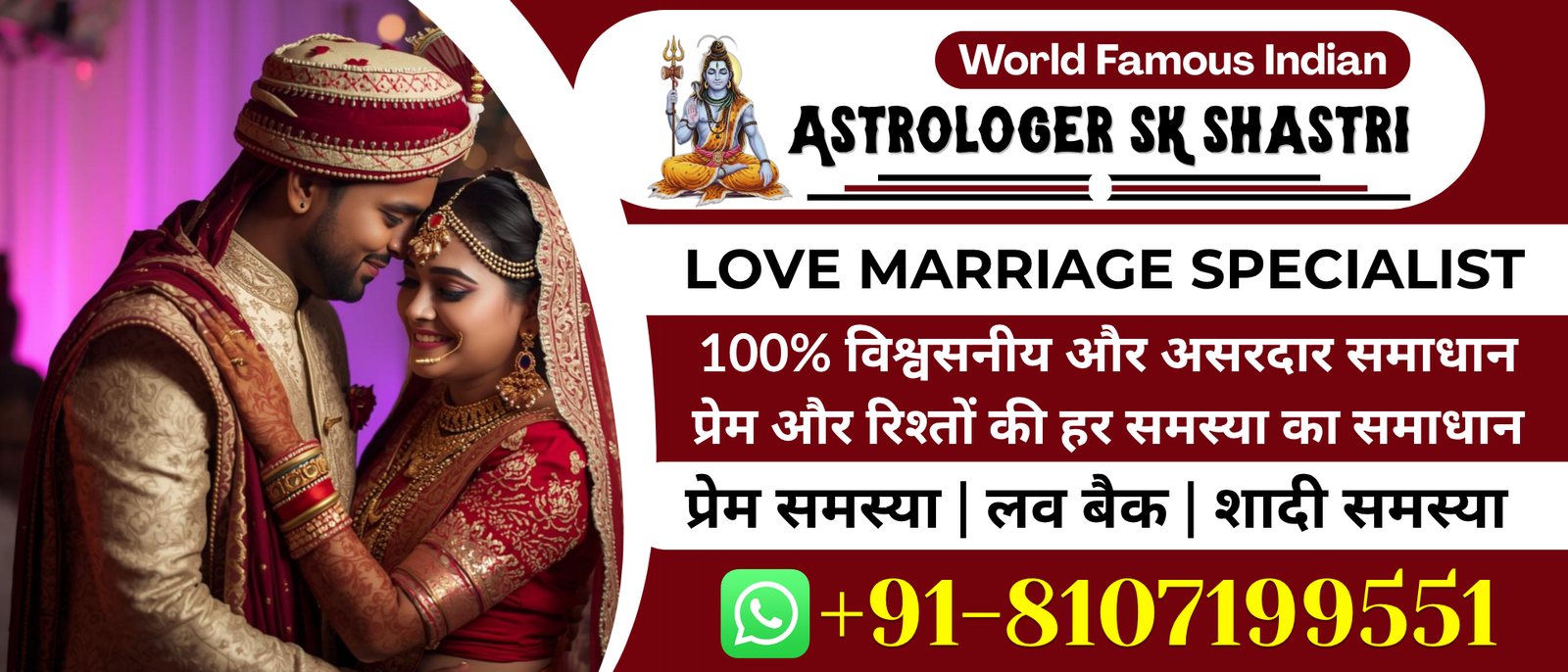 Astrologer SK Shastri Ji is a trusted and experienced astrologer known for helping people overcome love-related challenges. Whether you are facing misunderstandings, breakups, delays in marriage, one-sided love, or relationship conflicts, his astrological guidance offers effective solutions. Through accurate horoscope analysis and powerful remedies, SK Shastri Ji helps reunite broken relationships, strengthen emotional bonds, and restore harmony between partners. His spiritual practices and pujas are aimed at removing obstacles in love life, bringing peace, stability, and long-lasting happiness.