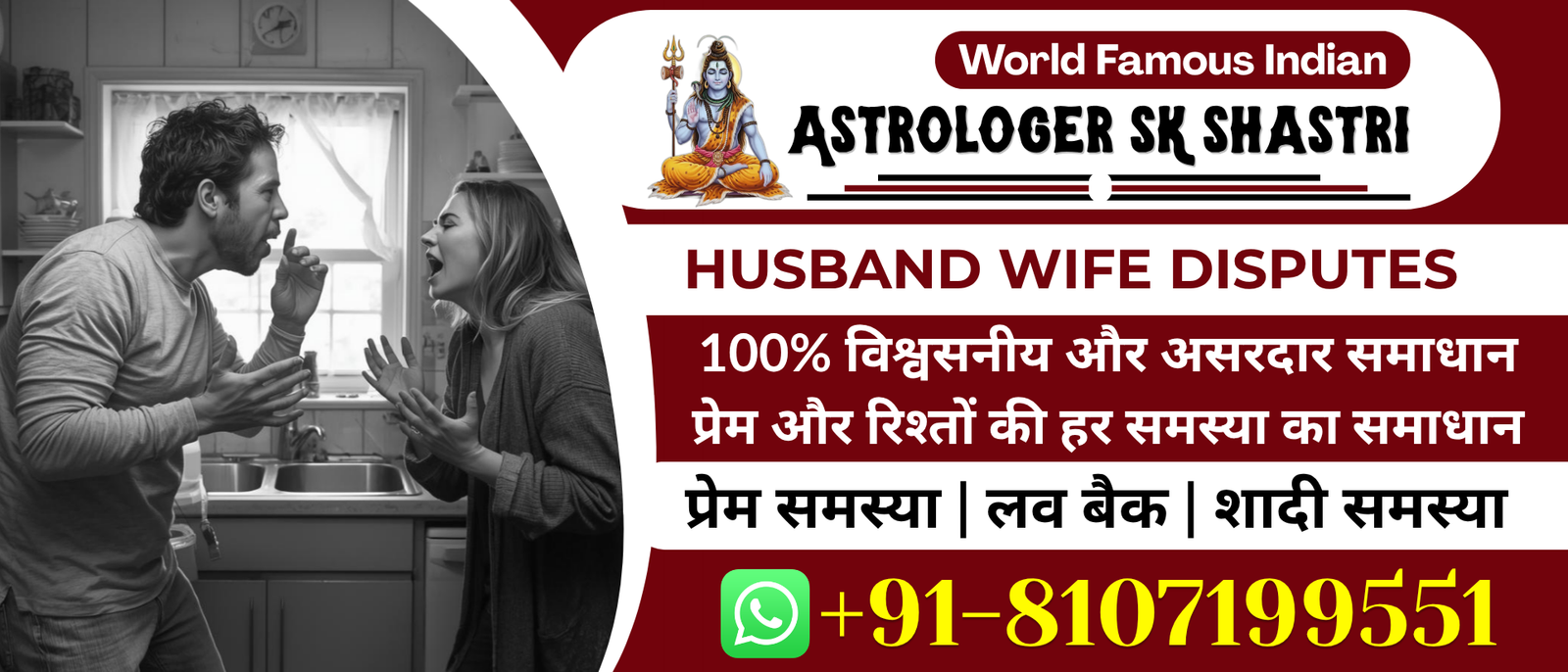 Get real solutions from an expert astrologer to quickly resolve your husband-wife problems, which will bring back the love between the couple. Consult now for quick and fast husband-wife problem solutions on call.